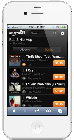 Amazon vient d’optimiser son site de vente de mp3 pour tous les appareils iOS comme l’iPhone, l’iPad ou l’iPod. Il sera possible d’acheter des albums ou des chansons directement depuis le navigateur natif MobileSafari de votre iDevice.