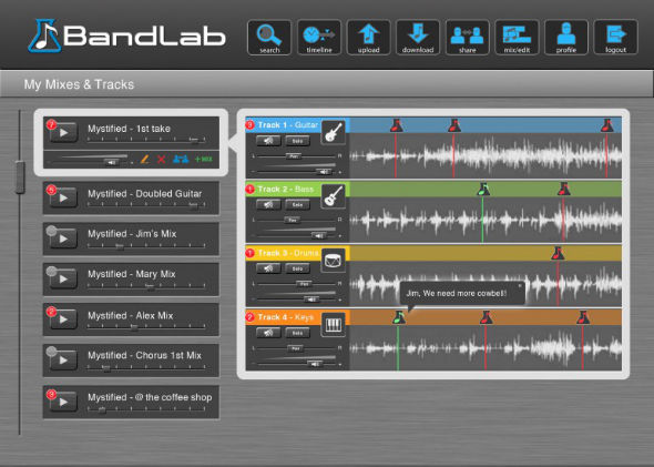 BandLab de JamHub est un logiciel de création musicale basé sur le cloud. Ceci permet aux utilisateurs d’avoir un espace de stockage sécurisé et accessible n’importe où. L’utilisateur pourra donc sauvegarder ses sessions, d’uploader des morceaux, de mixer ou encore d’éditer une piste audio depuis un smartphone, une tablette tactile ou un ordinateur.