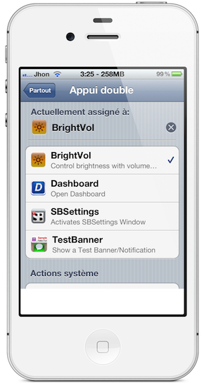 BrightVol est un tweak qui se présente plutôt comme une addon au tweak Activator. En effet, vous pourrez choisir d’ajuster le volume ou la luminosité de votre iDevice via les boutons de volumes en effectuant une simple commande Activator.