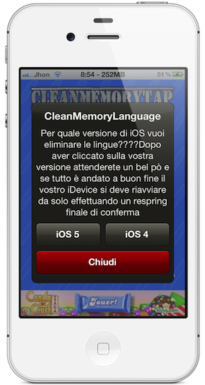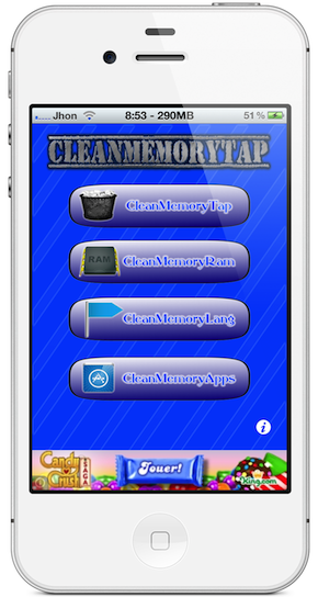 L’application CleanMemoryTap permet de gagner (ou d’au moins conserver) un peu de performance sur votre iDevice. En effet, celle-ci permet de vider la RAM, de supprimer des applications plus ou moins utiles et même de supprimer les fichiers des langues inutilisées.