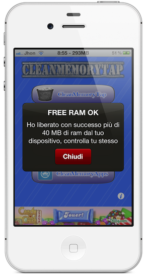 CleanMemoryTap : Conservez de bonnes performances sur votre iDevice.