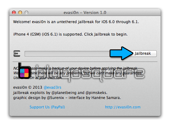 Evasi0n 1.5.3 : Jailbreak Untethered de l’iOS 6.0, 6.0.1, 6.0.2, 6.1, 6.1.1 et 6.1.2 sur iPhone, iPod et iPad (Windows/Mac/Linux).