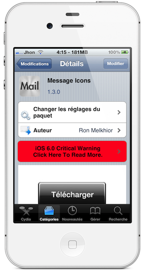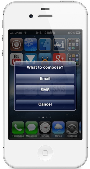 Message Icons est un tweak qui vous permettra d’envoyer très rapidement un nouveau SMS ou email grâce aux trois nouvelles icônes ajoutées sur le Springboard de votre iDevice.