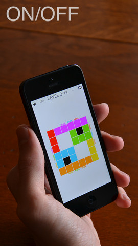 ON/OFF est une application pour iPhone, iPod et iPad développée par Thomas Castel, Alexandre Konieczny et Jérémie Francone, trois français de chez Nuage Touch, une entreprise basée à Grenoble. Premier jeu de l’entreprise, ON/OFF se base sur le concept du Rubik’s Cube. Dans une vue en deux dimensions, vous devez déplacer des rangées verticales ou horizontales de tuiles colorées. Lorsque vous en déplacez une, toutes les autres se déplacent en même temps qu’elle. Si une tuile se trouve au bord de la zone, elle sera tout de même déplacée et traversera la zone pour apparaître de l’autre côté.