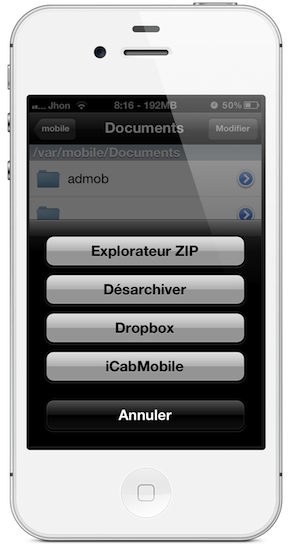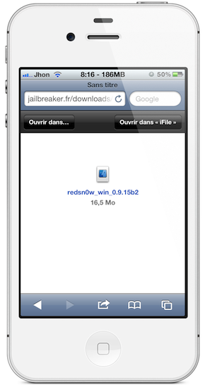 Maintenant vous pourrez télécharger n’importe quel fichier directement depuis votre iDevice comme si vous étiez sur un ordinateur. La progression du téléchargement est affichée par l’avancée de la barre d’adresse. Il sera possible de récupérer les fichiers en SSH (ou via DiskAid par exemple), les retrouver avec iFile (pour désarchiver les fichiers ZIP) ou les utiliser directement sur l’iPhone (comme un .deb).