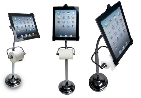 Lorsque vous allez aux toilettes, la plupart d’entre vous doivent certainement lire un magazine, un bouquin, faire des mots croisés ou bien se tourner les pouces. Dans cette société où les smartphones et tablettes tactiles occupent une place importante dans nos vies, il semblerait qu’il y ait un marché émergent pour les accessoires permettant d’utiliser ces appareils lorsqu’on est aux toilettes.
