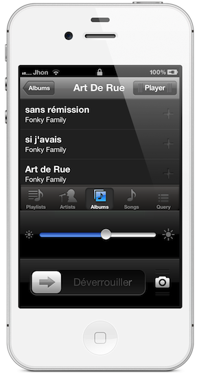 • Reveal Media Controls : Affiche simplement les commandes de l’iPod à la place de l’horloge. Il suffit de scroller de droite à gauche pour afficher l’horloge ou le slider pour ajuster la luminosité.