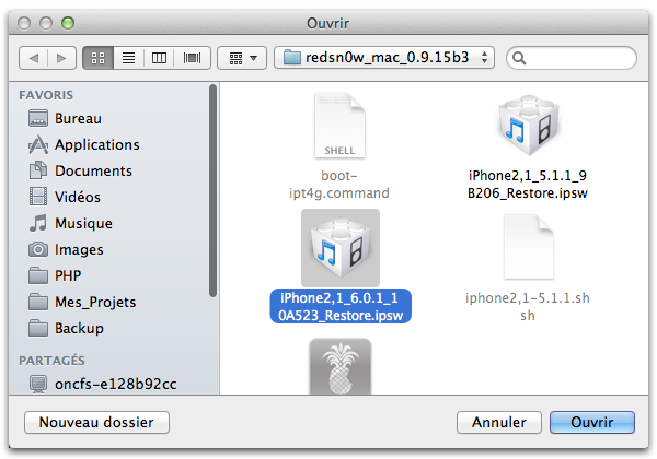 Si vous souhaitez restaurer (downgrader) vers un firmware (iOS) qui n’est pas le tout dernier (l’iOS 6.0.1 actuellement), plusieurs possibilités s’offrent à vous :