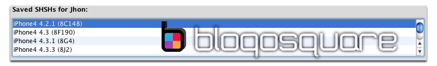 Cliquez sur celui-ci pour le sélectionner et vérifiez que vous disposez bien du shsh de cet iphone qui correspond à la version de firmware (iOS) que vous souhaitez installer.