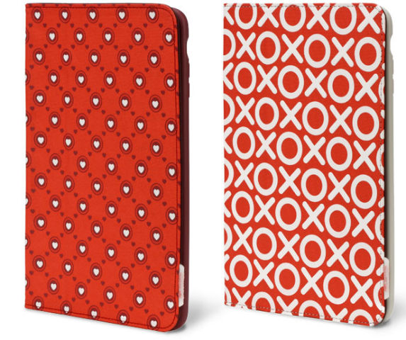 Les coques de protection pour l’iPhone 5 sont en polycarbonates avec des coeurs à l’arrière de la coque. Pour l’iPad mini, une housse de protection est en rouge avec des petits coeurs, et pour l’autre les XO représentent «love and kisses».